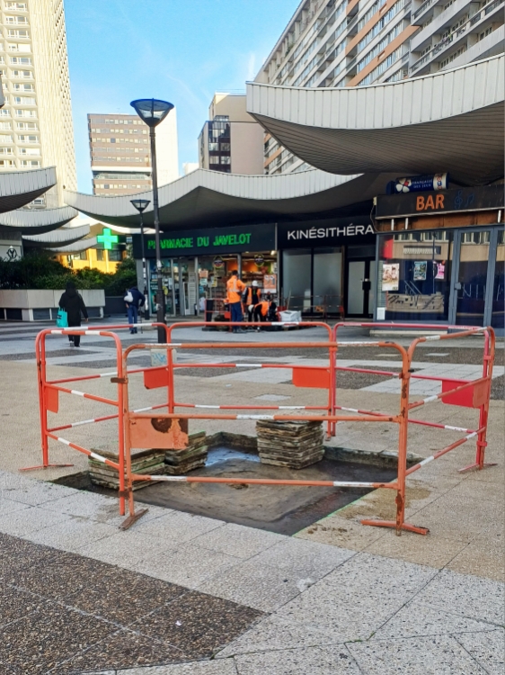 d'écoulement des eaux pluviales, la dalle des Olympiades
