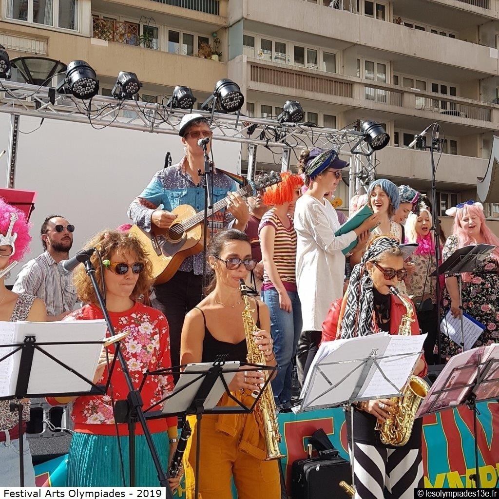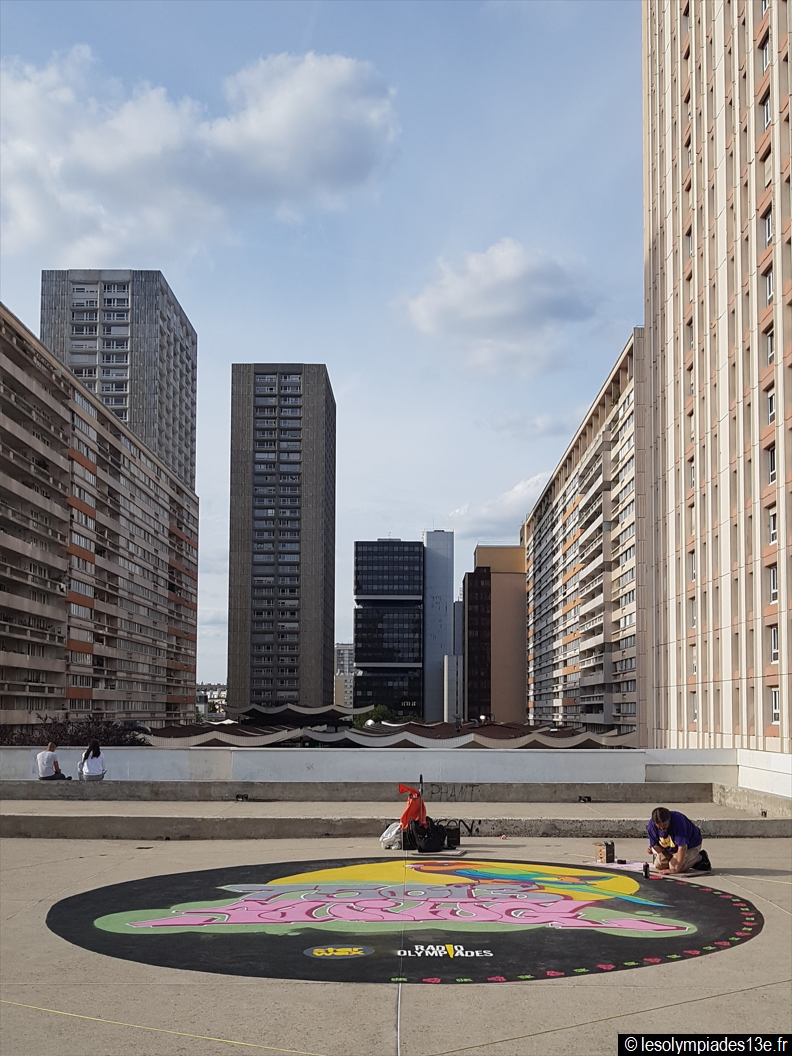 La dalle des Olympiades se transforme aussi en scène de concert, quand ce n'est pas en festival comme en septembre 2019. Pendant deux jours, quasi non–stop, le "Festival Arts Olympiades", un événement multiculturel imaginé par les habitants, a enthousiasmé petits et grands. Une année plus tard, toujours en septembre, Guesh Patti (l'interprète d' "Etienne" 1987) séduite par le lieu, offrait aux habitants de la dalle une performance poétique "Le souffle court".