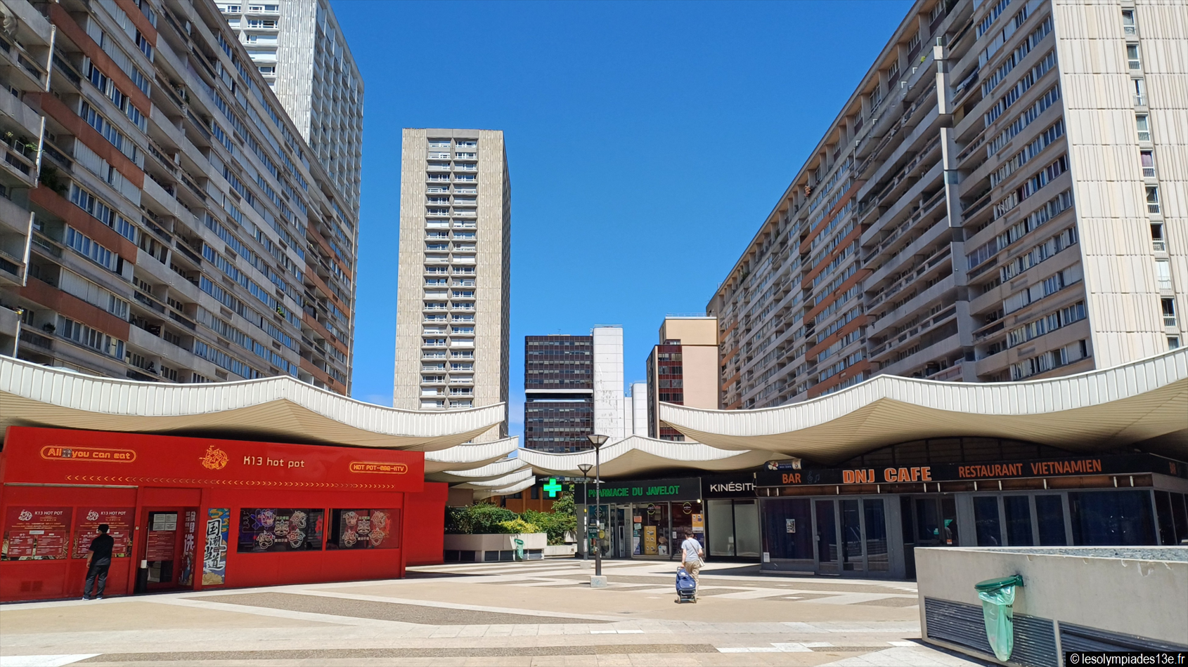 Elle est composée de commerces réparties entre les tours Grenoble et Rome. La toiture des commerces n'est pas sans rappeler celle des pagodes bouddhistes, toutefois ce n'était pas le but recherché par l'architecte en chef du projet d'urbanisme des Olympiades.